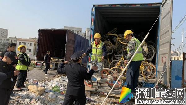 深圳新闻网宝安讯(记者 曾舒琪 通讯员 周童)扫码骑车、随借随停,共享单车给市民群众出行带来不小的便利。然而,随之产生的侵占盲道、无序停放等现象也给城市管理带来了不小的挑战。为进一步加强共享单车管理,整治过度投放、乱停放等现象,近日,福海街道综合执法队组织专项整治,全面清理批量停放在人行道、绿地等区域的及已经损坏不能正常骑行的共享单车。