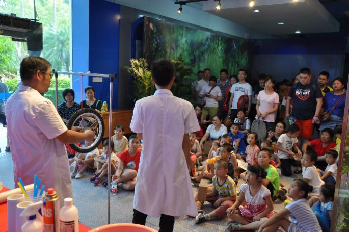 答:节目名叫“科学秀”,是由科技馆工作人员自己策划、编剧、演出,并常年走进中小学校,已开展1000余场。目前“科学秀”主要有《疯狂的空气》《自行车上的科学课》《比冰还冷》《泡泡秀》等节目。由于疫情防控工作的要求,近期暂不公开表演,恢复时间请留意“宝安科技馆”微信公众号。