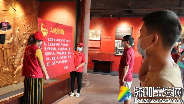 随后,在党员志愿者的带领下,团员青年们参观了中共宝安县第一次党员代表大会纪念馆。活动现场,团员青年驻足认真聆听讲解,细观馆内的展品。珍贵的照片,详实的史料,让参观的团员青年们深深为革命先烈坚定的政治信仰、坚强的革命意志所震撼。参观结束后,全体团员青年郑重地重温了入团誓词。